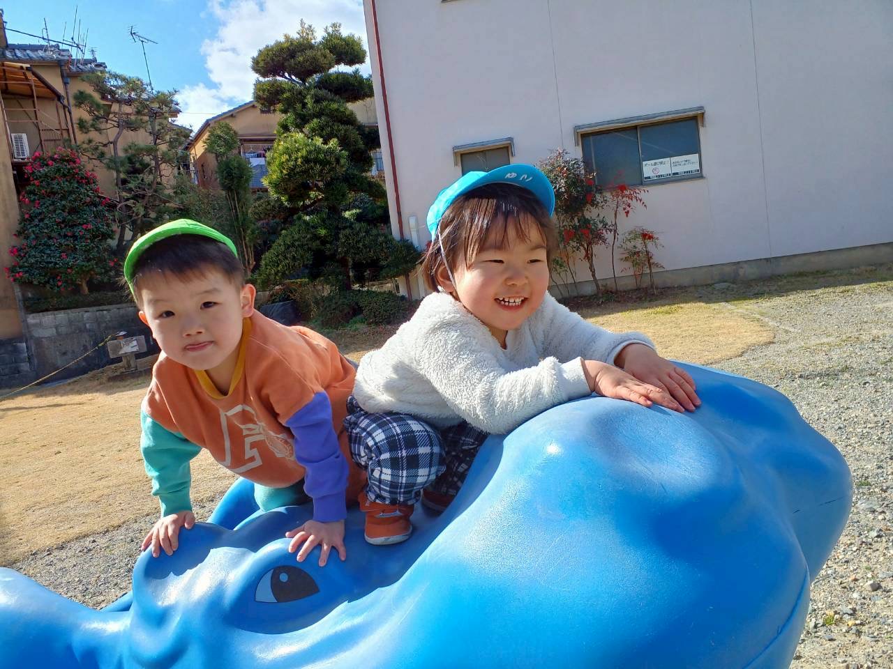 凧揚げでは寒さにも負けず元気いっぱい走りまわっていました。凧を引きずって走る姿もかわいらしかったです。